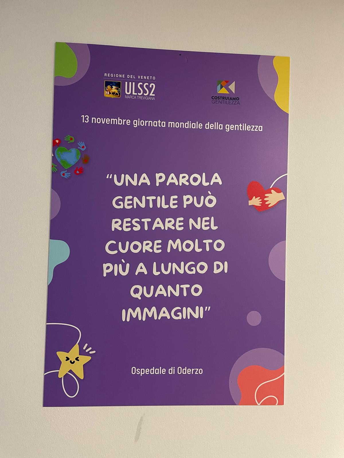 “L'ospedale di Oderzo farà da apripista per iniziative che andremo ad esportare anche nei restanti ospedali – sottolinea la direzione generale -. Promuovere un ambiente di cura più umano e accogliente, riconoscendo l'importanza della gentilezza nel migliorare non solo il benessere dei pazienti, ma anche la coesione e la motivazione del personale sanitario – rappresenta uno dei nostri “must”. Da sempre diciamo che la cura funziona molto di più se affiancata dal prendersi cura e la gentilezza non è un semplice esercizio di buonismo, ma un vero e proprio investimento culturale e civile. In un contesto sanitario complesso come il nostro, la gentilezza può diventare uno strumento potente per migliorare la comunicazione, ridurre i conflitti e creare un ambiente più positivo per pazienti e personale”.