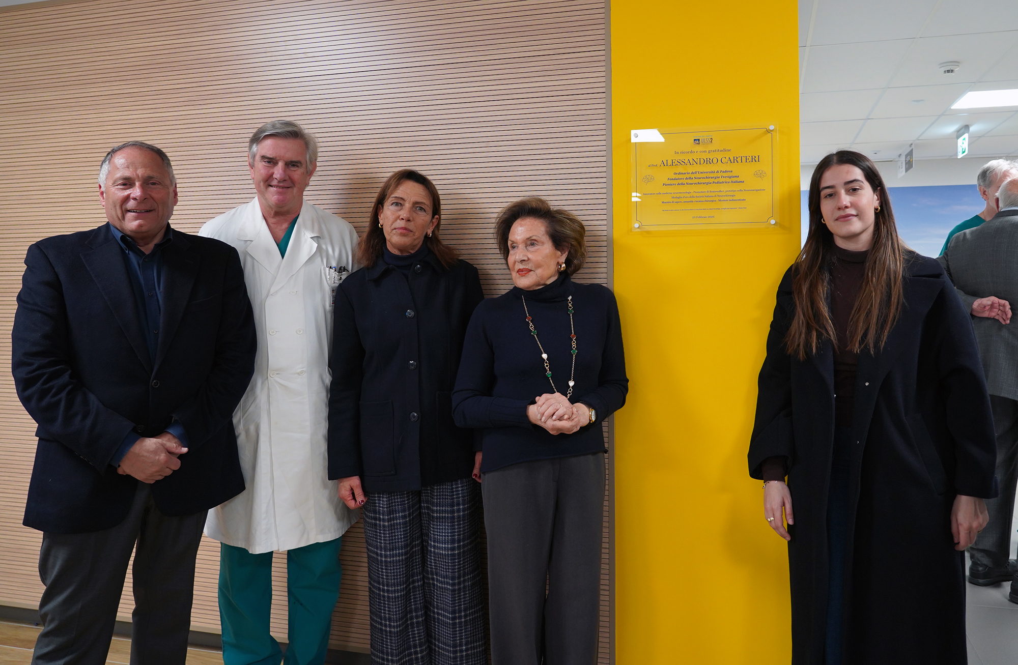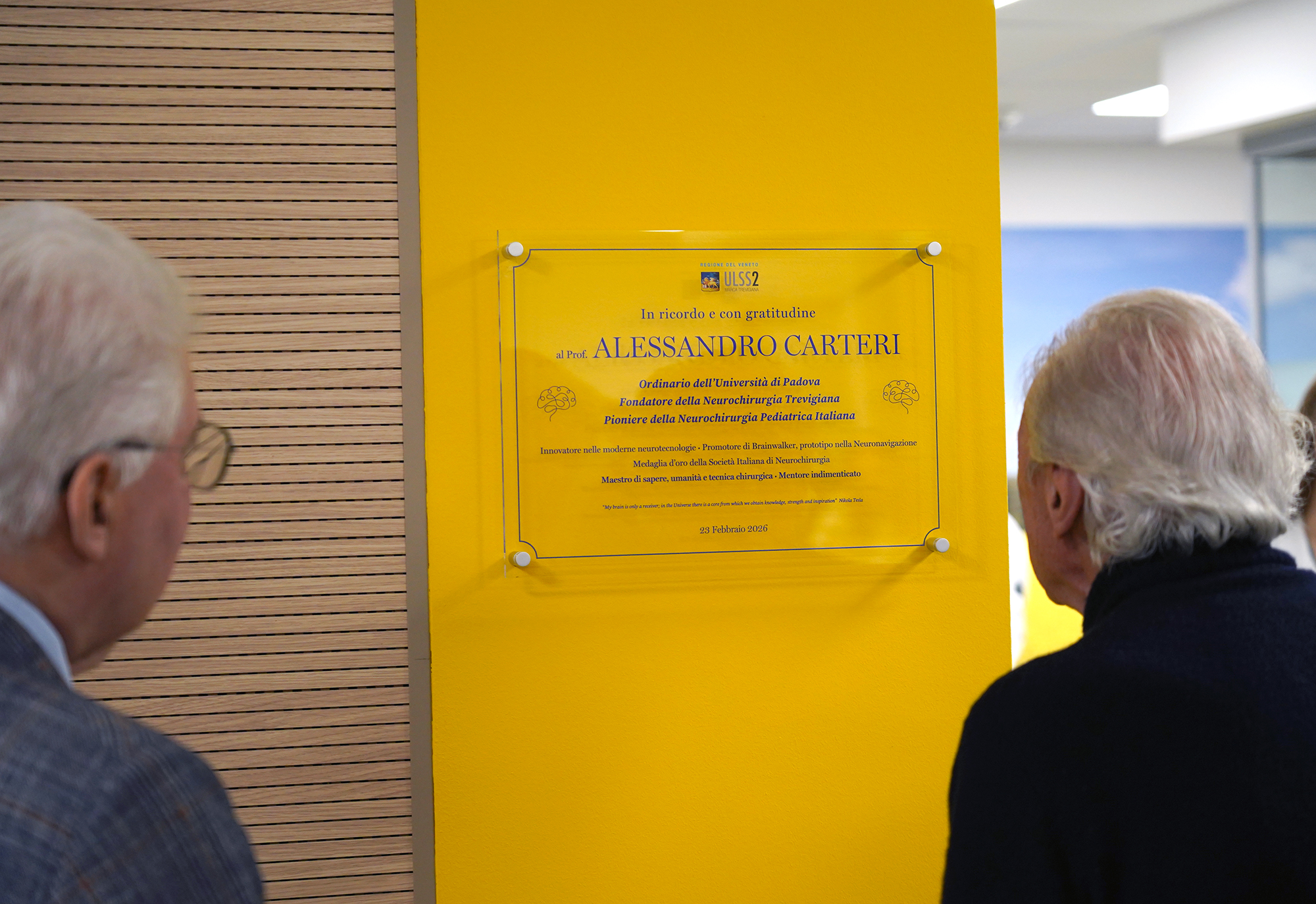 (n. 33/2026) L'ospedale Ca' Foncello di Treviso ha celebrato oggi il professor Alessandro Carteri con una targa a lui dedicata nel reparto di Neurochirurgia, la struttura che egli stesso fondò e guidò per decenni con straordinaria dedizione e visione scientifica e che dal 1998 ha eseguito 9.000 craniotomie, 12.000 interventi alla colonna vertebrale e più di 700 interventi sull’ipofisi.